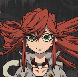 ツンツンに逆立った赤髪を持ち、どこか炎のようにも感じられるその色は、彼女の“激情”を象徴しているかのようです。