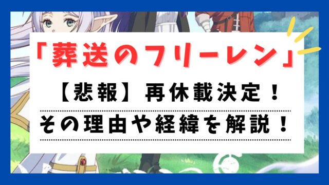 ファンタジー 【葬送のフリーレン】2025年10月15日をもって再休載が決定!休載の理由、経緯を解説!【悲報】 2025年10月15日 manga-dome マンガの隠れ家:あらすじ~最新話|ネタバレ・感想・どこで読めるか