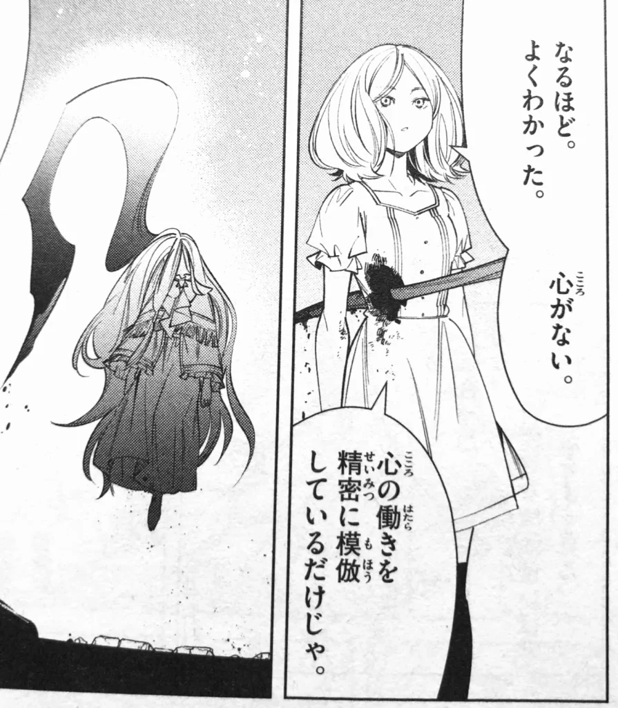 複製体は心の「働き」を精密に模倣するだけで、感情や意識そのものを持っていませんでした。