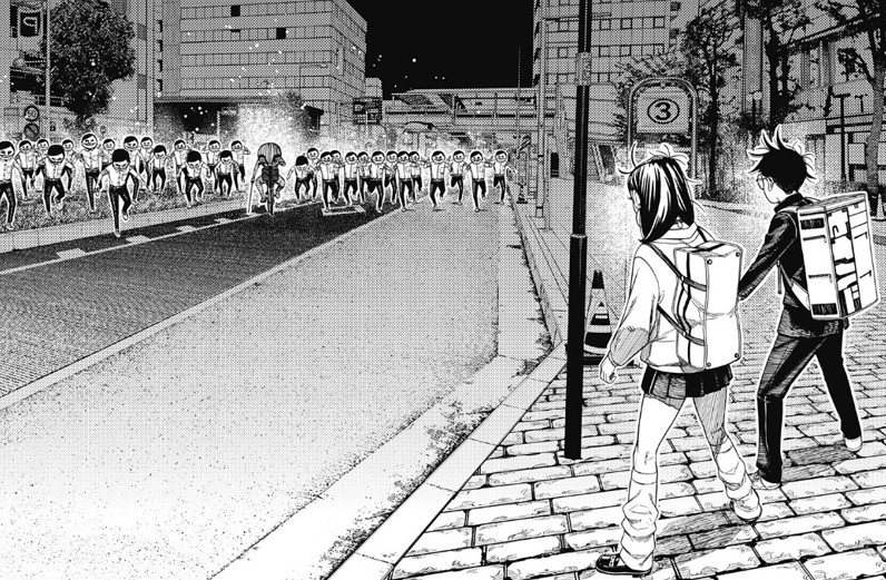 突如として周囲が真っ暗になり、遠くから聞こえてくる「トンカラ トンカラ…」という不気味な音。次の瞬間、ふたりの前に姿を現したのは、自転車に乗ったミイラ男。