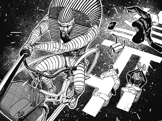 第218話から続くトンカラトン・ドリスとの戦闘において、モモはドリスの包帯をつかみ、それを巻き取ります。数千年ぶりに空気にさらされたミイラの身体は、その場で崩壊しました。